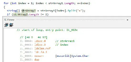 Cuando pulsas sobre uno estos nodos, su código aparecerá en el panel ubicado a la derecha de la interfaz de dotPeek. En este punto, dotPeek muestra el código en C#.