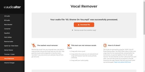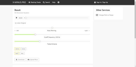 A pesar de estas opciones de más, el servicio nos permite quitar la voz de una canción de manera bastante sencilla, ya que lo único que tenemos que hacer es cargar la canción desde la computadora al servicio, seleccionar las opciones pertinentes, es decir las mencionadas más arriba y luego, cuando el sistema termine de realizar el trabajo, presionar sobre el botón “Download” para descargar la canción sin la voz a nuestra computadora.