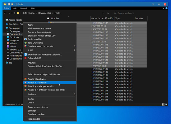 Zipear varios archivos con el menú contextual